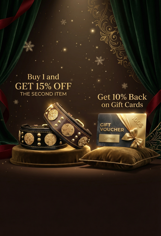 Absolutely a stunning collar. Was looking for the perfect collar for our sweet boy for his first Christmas with us and being able to custom make one was perfect. The quality was on point, have never been disappointed with Bestia in the past. Can't wait for Christmas so he can finally wear this beautiful collar.